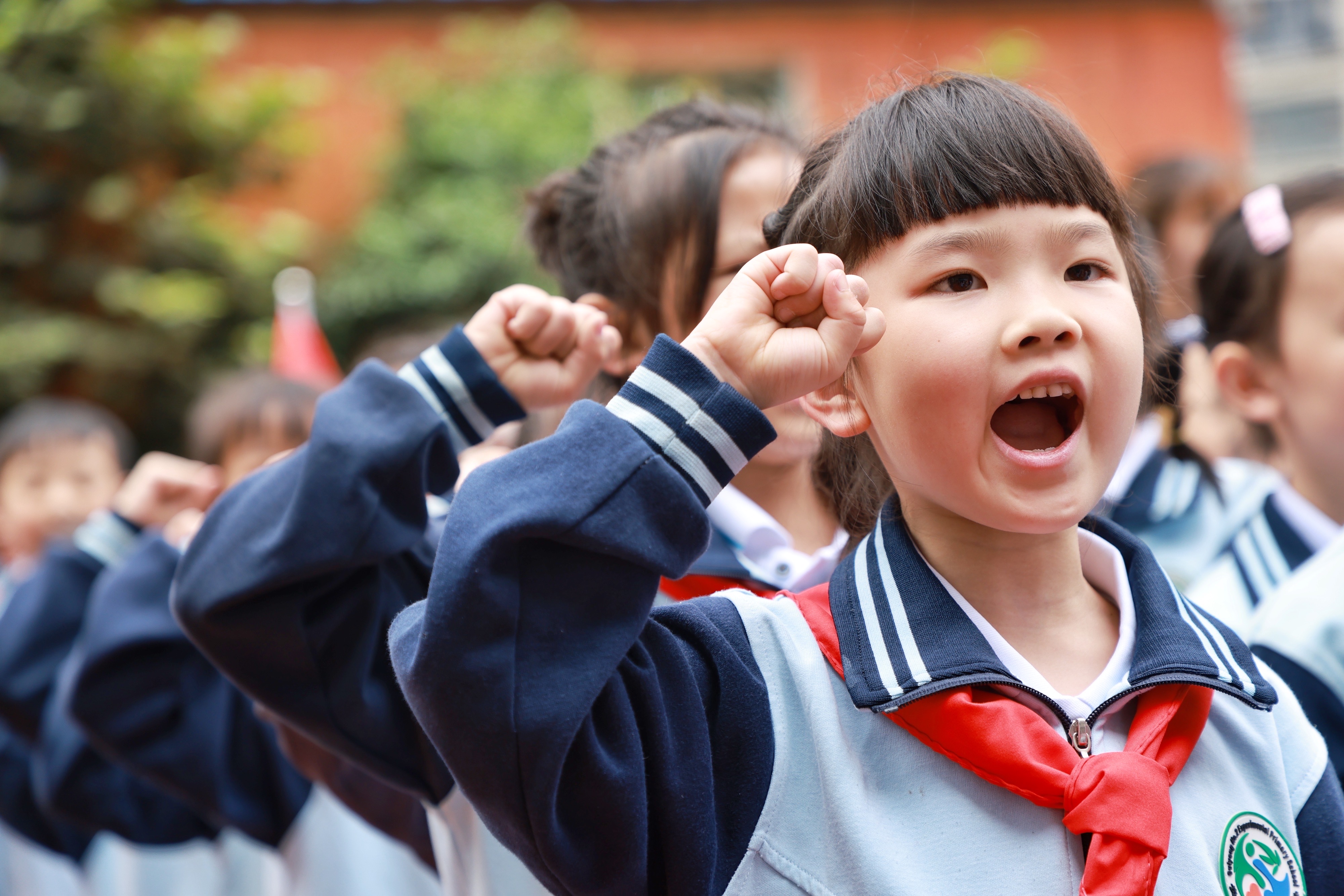 在“六一”兒童節來臨之際,貴陽市第二實驗小學宅吉校區的200多名一年級學生戴上紅領巾,光榮加入中國少年先鋒隊。