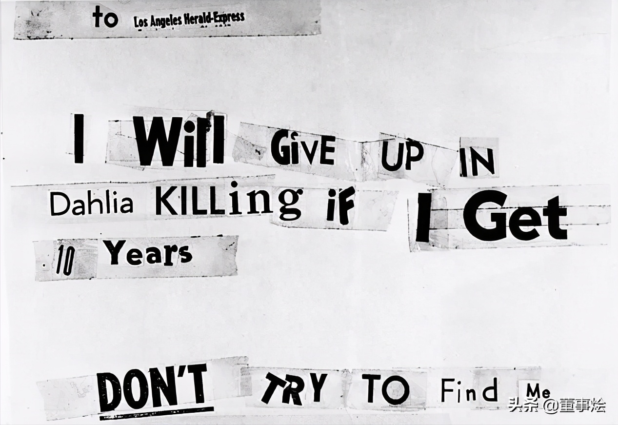 1947年1月28日,一封短信被寄送到警署,這回是用手寫的幾句話:“周三,1月29日上午10點是轉折點,(我)要在警察那里尋開心。”落款是“黑色大麗花復仇者”,很多人依據該信箋的內容推測兇手很可能將要在上述時間自首。兇手并未如“約”自首,而且馬上又寄給警方一張剪接加手寫修改的信箋,上面說:“(我)改變主意了,你們不會和我公平交易的,大麗花的死是合理的。”
