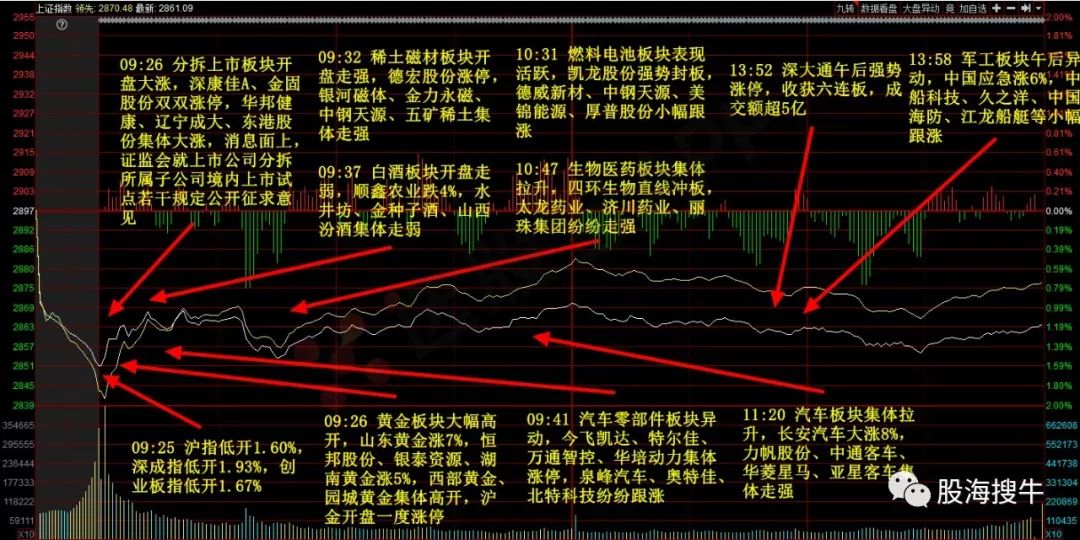 導讀簡單復盤今天市場如期低開,但沒有如期走高,正確的說法是,心有余力不足。盤面上看,受外盤影響,兩市集體低開,但開盤之后指數較為強勢,多頭進攻積極,三大指數集體走強,盤面上看,黃金、稀土漲幅較大,而分拆