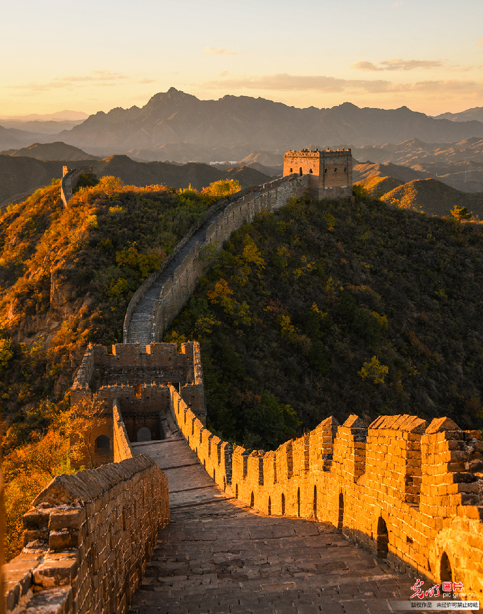 萬里長城是中國歷史乃至世界歷史上的一顆璀璨明珠。它是中華民族智慧的結晶,是華夏民族的驕傲和文明的象征,它反映了我國古代建筑技術的偉大成就。長城己有2000余年的歷史,全長約21196公里,素有萬里長城之稱。至今,長城依然屹立在群山之巔,長城內外,仍然飄蕩著和平的芬芳,我們深信,千百年之后,世人再來仰望長城,還會浮想聯翩,來贊美中華民族之不屈精神和輝煌成就!(傅大利攝/光明圖片)( 文章來源:光明圖片)
