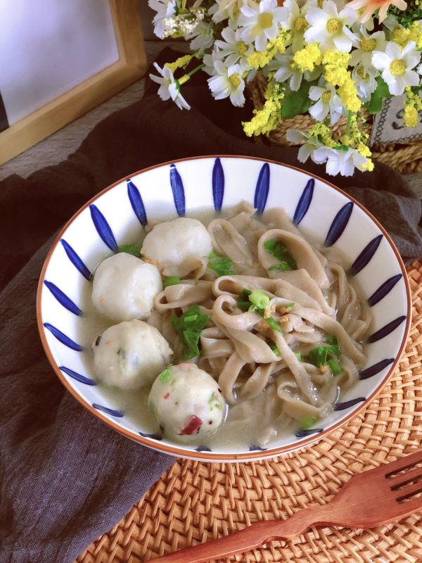 6、好吃的墨魚丸蕎麥面。