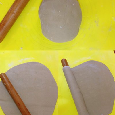 4、和好的,蓋上保鮮膜,靜置20分鐘,在揉勻,搟成大面片。記得撒點干粉防粘。
