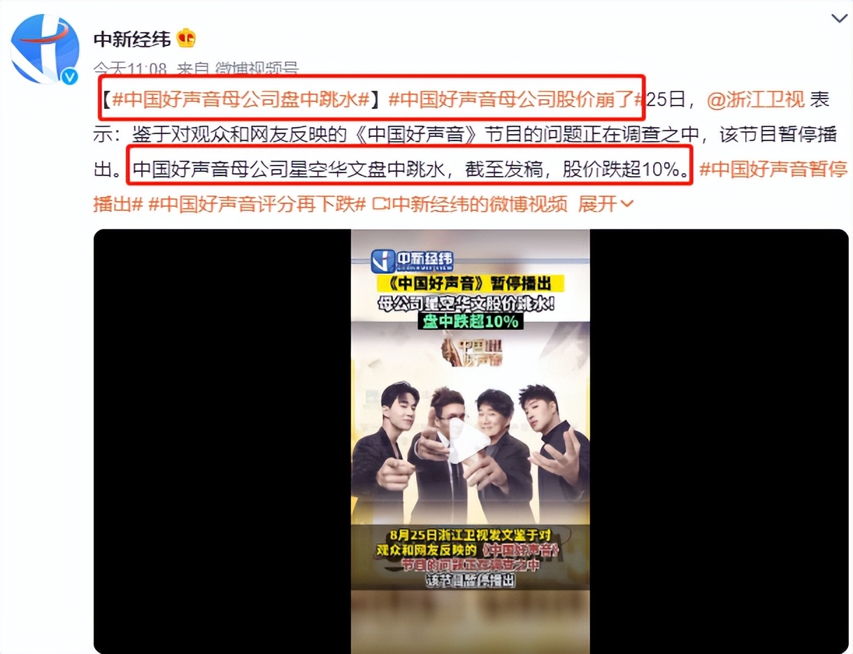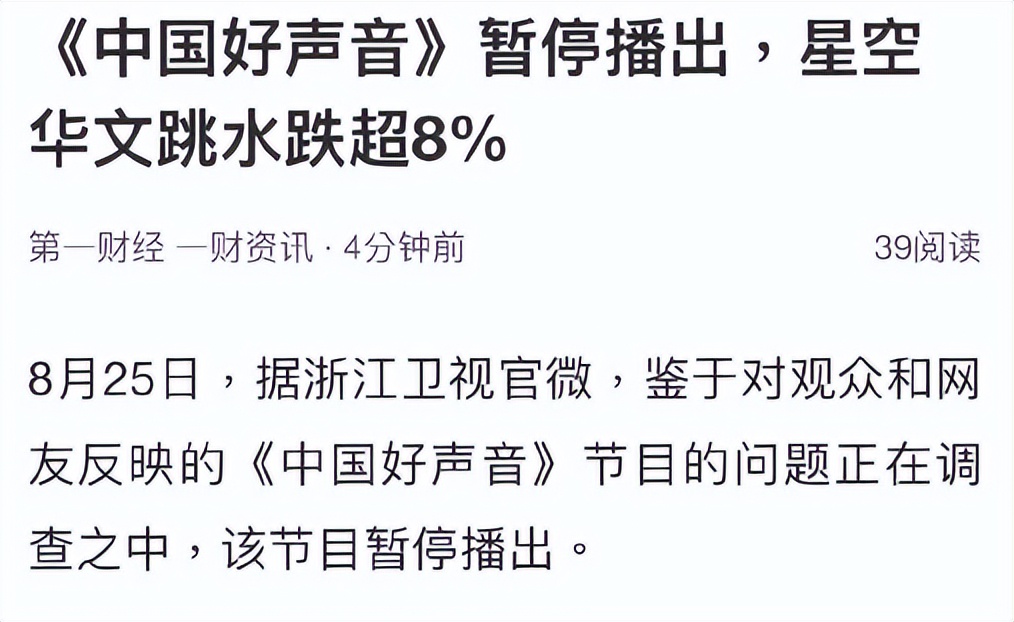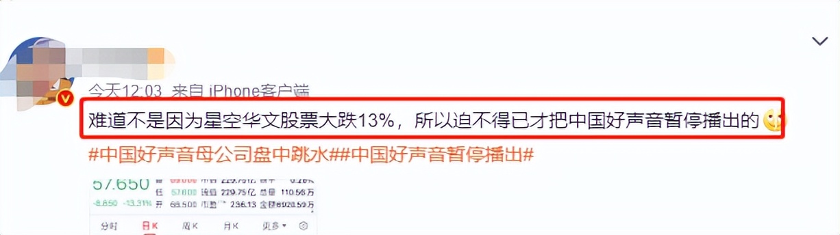 “難道不是因為星空華文股票大跌13%,所以才迫不得已把中國好聲音停播了?”