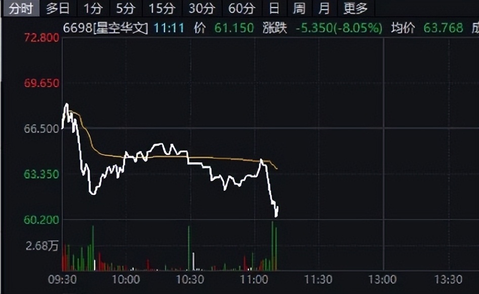 直到這時網友才發現,今日開盤后,星空華文的股價已經從開盤66.50港元跌至54.85港元。
