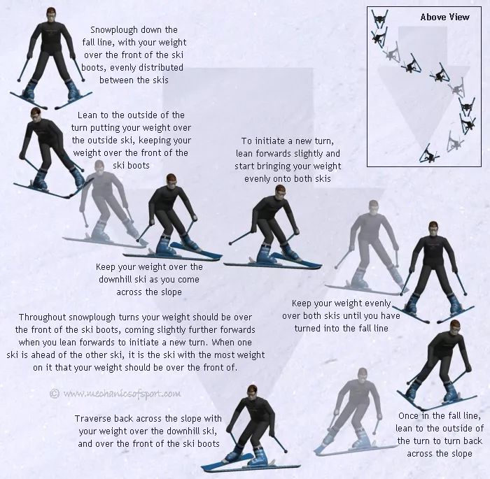 接下來我們就來看看在滑雪中能保命的犁式剎車和犁式轉彎。