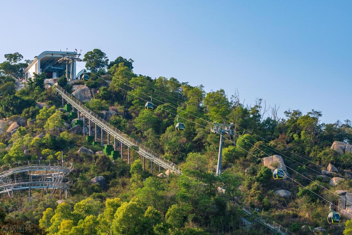 景山公園依山傍海,是珠海的最佳觀光點,山體不高,可以步行上山,也可以乘坐纜車,俯瞰遠處的珠海。貼著山嶺起伏的海岸線,狹長的海濱浴場映入眼簾。
