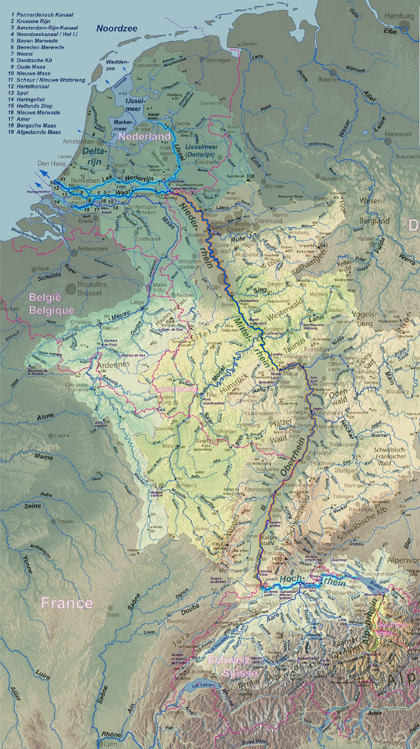 萊茵河流域-發源于阿爾卑斯山區,最后注入北海