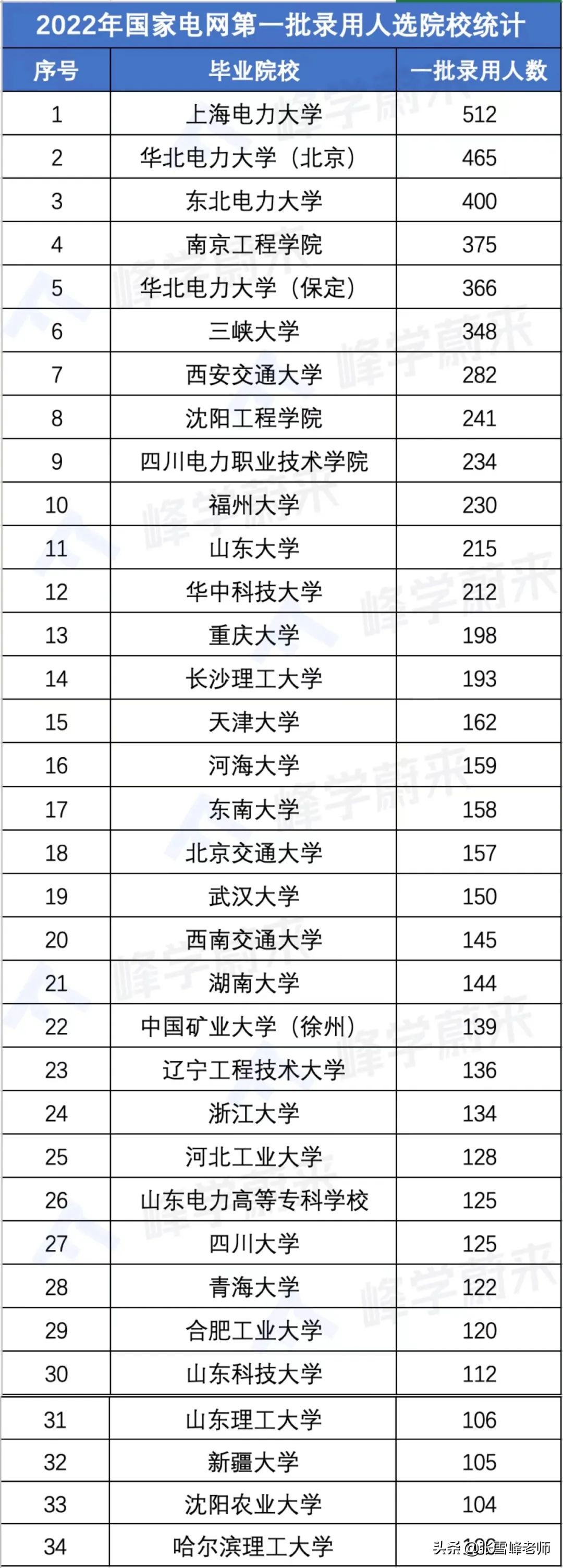 各省錄用人選院校統計表,沒看過的戳:26省公布22年國家電網錄用名單!張雪峰:專業報考太卷了