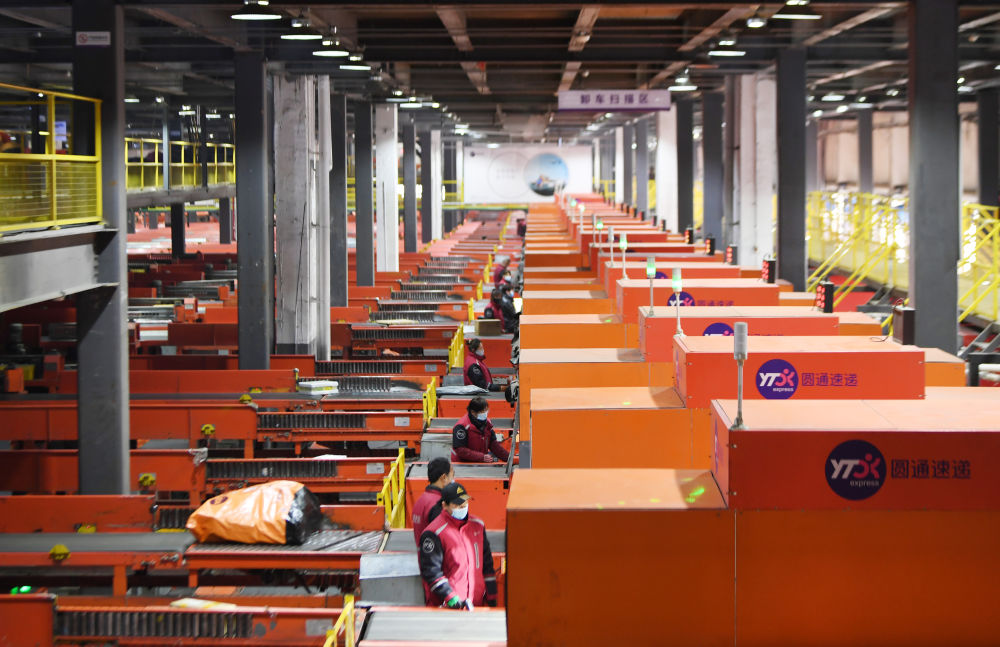 在位于河北永清的圓通速遞北方總部基地,大型貨車不時進出,全自動分揀線24小時高速運轉。一件件包裹經掃描儀確認信息后,在200多米長的傳送帶上二次分揀。平均每天超200萬件快遞從這里發往全國各地。
