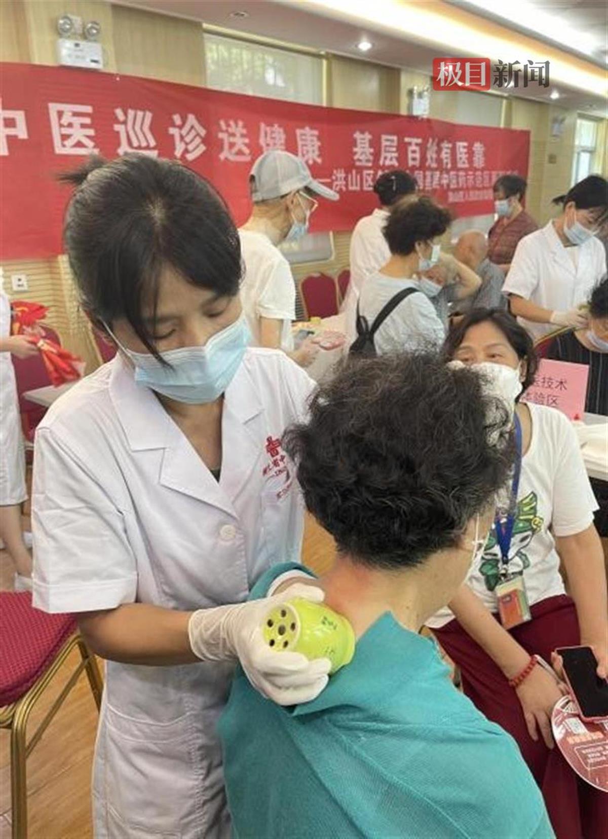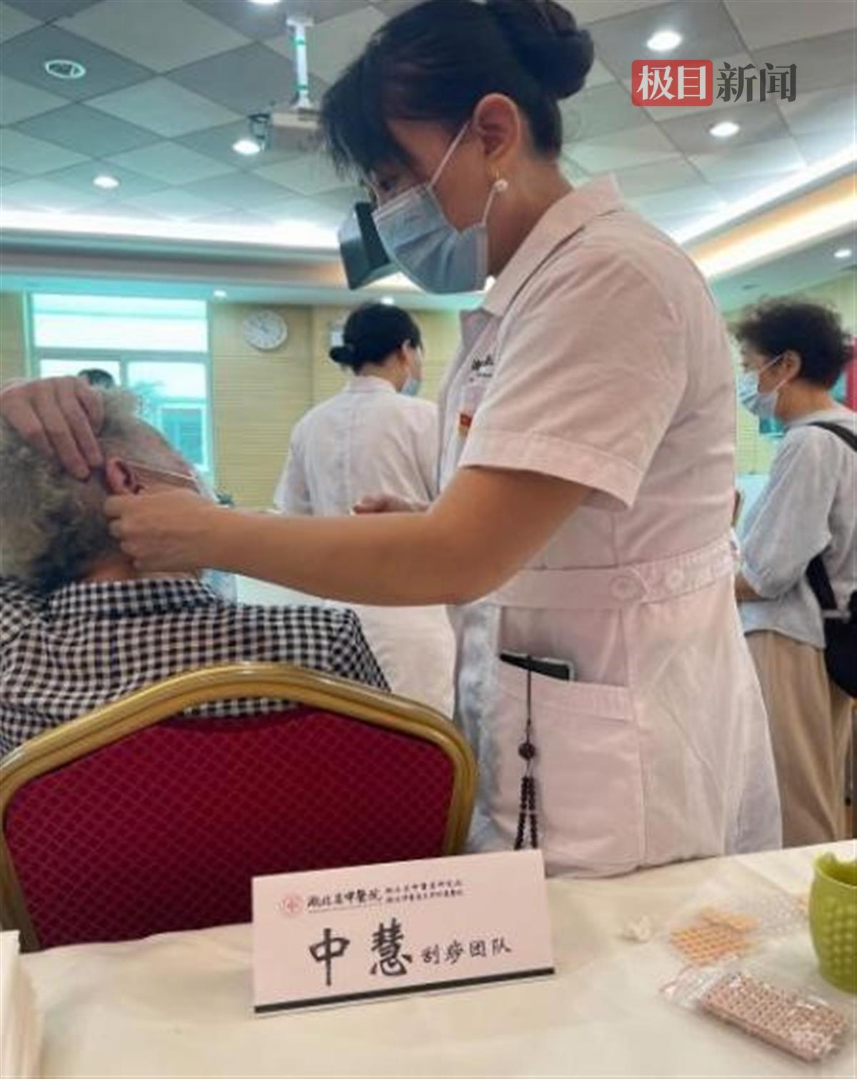 隨后由湖北省中醫院護理部的志愿者們,為居民提供溫通刮痧、耳穴壓豆、艾灸等多種特色中醫適宜技術體驗。活動現場,還有梨園街東湖社區衛生服務站家庭醫生團隊為居民進行血壓的檢測,帶來了多種養生茶飲,為不同居民提供適合的茶飲進行體驗,將“舌尖上的養生”落到實處。活動過程中,護理人員與居民互動,現場氣氛活躍,掌聲陣陣,受到了省電社區廣大居民的熱烈歡迎。