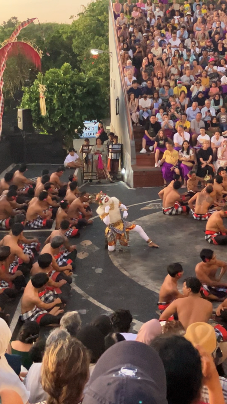克差舞表演的看臺上,人們緊挨著坐著,聚精會神。他們中有著來自中日韓的東亞面孔,或是情侶,或是一家大小;也有游客裝扮有著濃郁的南亞色彩,顯然來自印度教的發源地——印度;還有著典型背包客形象的白人,他們一副明顯被“東方魔力”給迷倒了的神情;許多不同信仰背景的印尼國民也在這里度假,有的女生穿戴希賈布,有的沒戴。熱鬧的場面,配上堪稱完美的海景和夕陽,讓人不禁感慨,巴厘島這個“旅游天堂”又回來了。