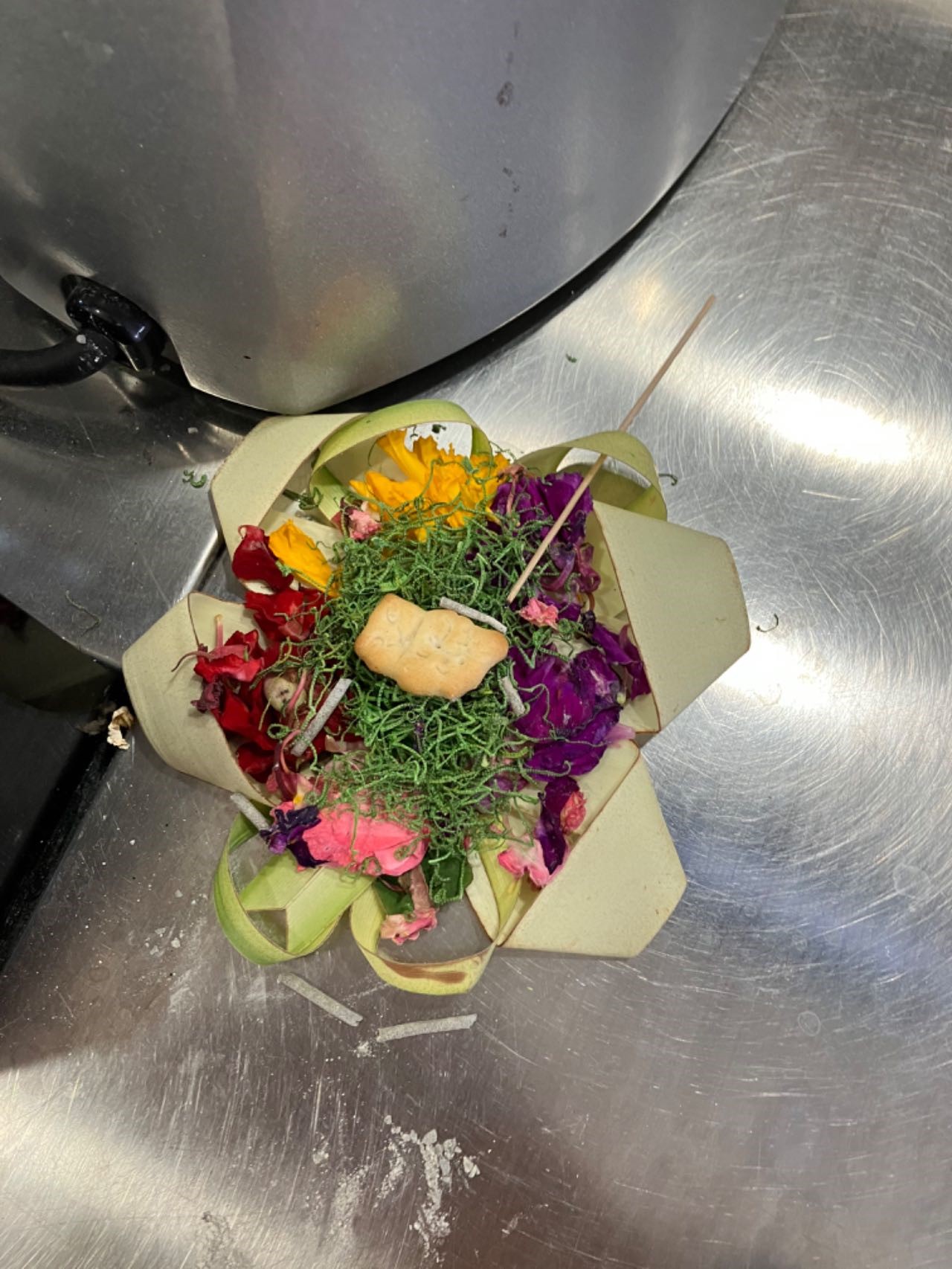 巴厘人經常供奉神明,巴厘島隨處可見Canang Sari儀式的貢品。