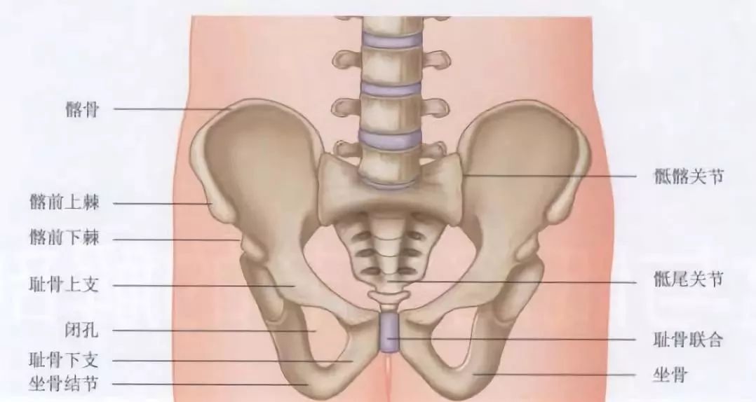 恥骨是髖部三塊骨骼中最靠前也是最小的一塊,將近1/5的髖臼由它構成。恥骨體堅硬、呈扁平狀,左右兩塊恥骨形成恥骨聯合關節,該關節由一塊纖維軟骨連接,是微動關節。恥骨上緣有一個骨性突起稱作“恥骨結節”,是腹股溝韌帶的附著點,也是觸診時的骨性標志。