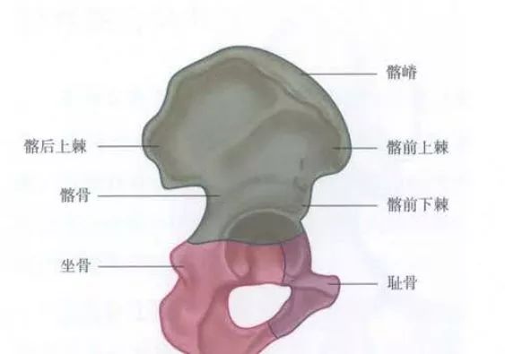 人出生時髂骨、坐骨和恥骨是分開的,并由透明軟骨連接,到青春期末,這幾塊骨自然融合,通常到20-25歲才完全骨化。這三塊骨融合之后被統稱為“無名骨”(髖骨)。髖骨的外側是髖臼,髖臼連接股骨頭形成髂股關節,也叫髖關節。
