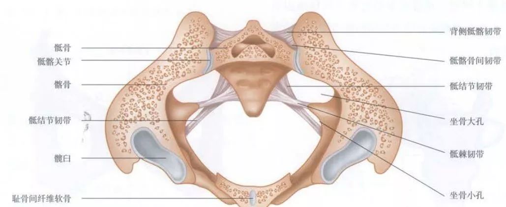 恥骨聯合關節是非滑液性纖維軟骨微動關節,連接左右兩側恥骨,成人僅有2mm的移動,可能存在1°的旋轉;孕期及產后期的女性活動度會增加;而關節面的形狀以及內收肌和腹肌的收縮也可能影響到恥骨聯合關節的運動。透明軟骨覆蓋了恥骨末端,并與恥骨聯合中間的纖維軟骨相連接,恥骨聯合關節擁有強壯的上側和下側韌帶,而后側韌帶卻很薄弱。