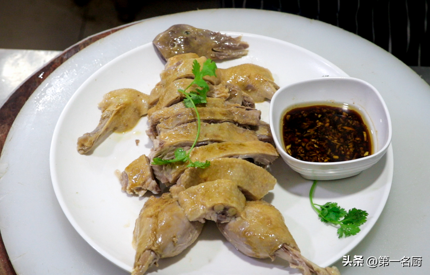 8.大概煮25分鐘過后關火,繼續燜10分鐘,然后取出煮好的鴨肉,等不燙手的時候,把鴨肉切開,擺入盤中,放上幾朵香菜用來點綴,最后再擺上蘸料汁,美味即成。
