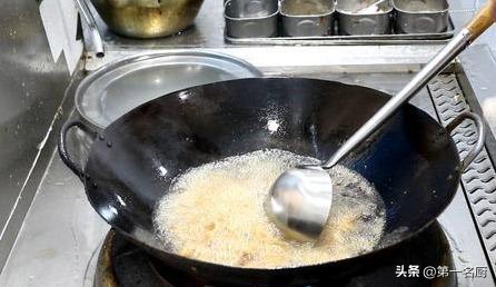 5.起鍋倒入食用油,油燒至四成熱時,下入切好的鴨胸肉,用勺子輕推劃散,防止肉片粘連,炸30秒左右,撈出控油。