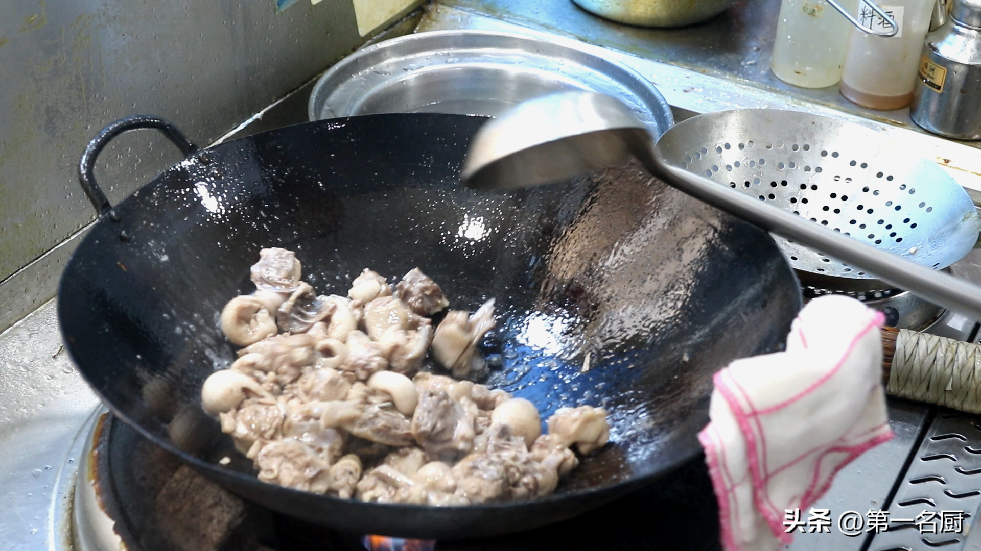4.鍋內燒水,涼水下入鴨肉,加入料酒10克去腥,用勺子翻動幾下,水開后撇去浮末,焯水兩分鐘倒出控水備用。