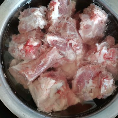 1、買來的骨頭先放入水中浸泡1個小時,中間多換兩次水,盡量將血水泡洗干凈,這樣也可以很大程度去除腥味。