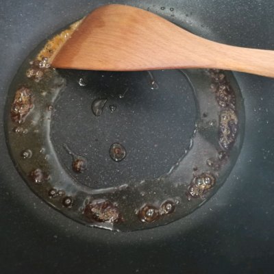 6、鍋中倒少許油,加入冰糖熬制糖色。