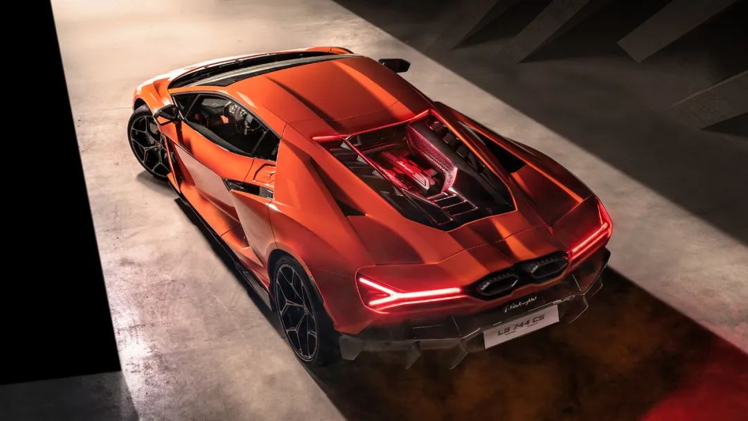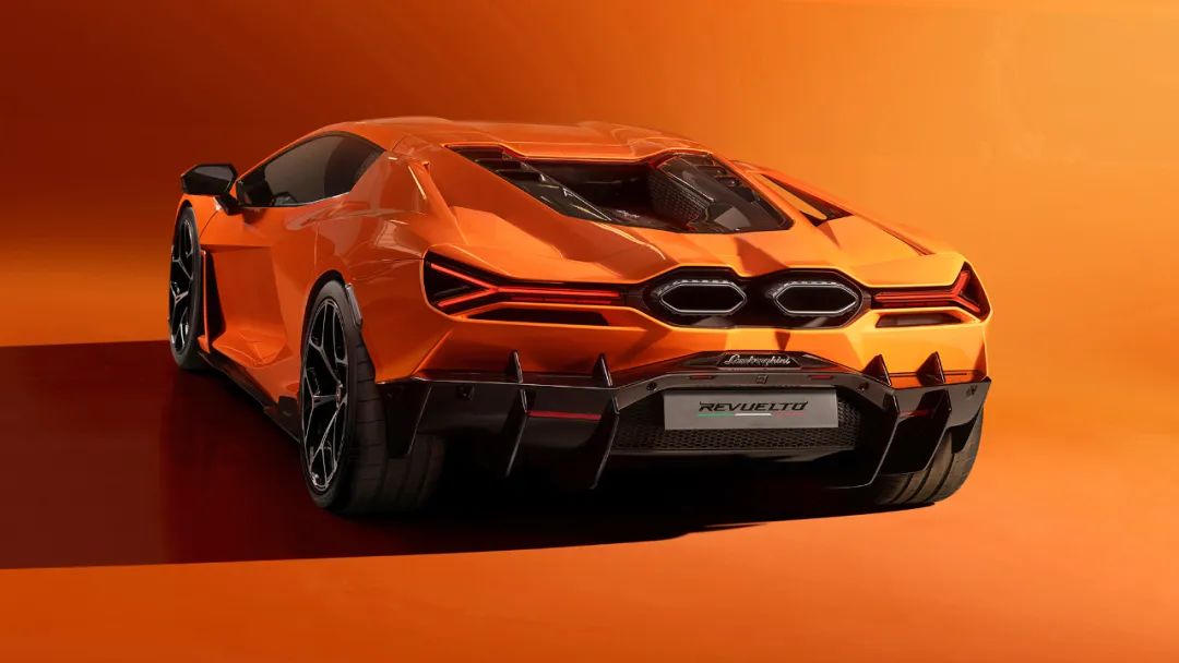 在車輛后方,蘭博基尼Revuelto則繼續堅持對于空氣動力學方面的執著。巨大的后部擴散器可以帶來非常夸張的下壓力,再配上位于尾燈上方的電動尾翼,相比Aventador末代的Ultimate版本來說,Revuelto的空氣動力學效率提高了61%,并帶來了總共66%的下壓力提升。這勢必會大幅提高Revuelto在中高速彎道的表現,進而提高賽道圈速。另外,能夠展示V12發動機真容的透明機蓋被保留,同時全新設計的六邊形排氣也與雙發戰機的類似。此時再加上橫向的“Y”型LED尾燈,最終讓Revuelto的尾部造型在擁有美感的同時,顯得異常囂張。