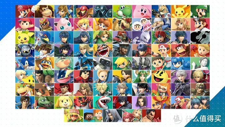 本作的體量可謂空前(極有可能也是絕后),首發的時候角色、場地、音樂的數量就已經足夠讓人瞠目結舌,但官方這幾年仍然在不斷推出新的DLC,可使用角色數量仍然在不斷增加中。截止本文發稿,游戲角色已經達到85人。涵蓋任天堂自己以及友商的各類名游戲,并且每位角色在游戲內都有其背景介紹說明,真可謂是游戲角色百科全書。而游戲場地也多達100多個,音樂800多首(就算每天聽4首,也要差不多大半年才聽得完)