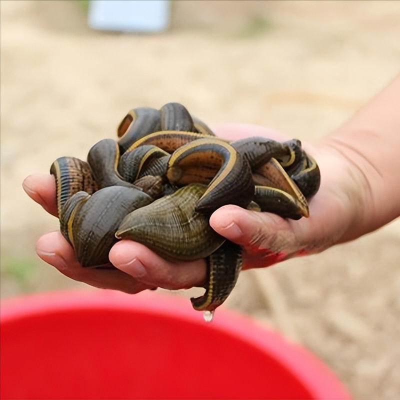 飼料投喂:水蛭雜食,通常5天投一次活體蝸牛,蝸牛要分散均勻,不要堆積,投喂時間為下午4.00后,并將撈出的死水蛭進行初加工。