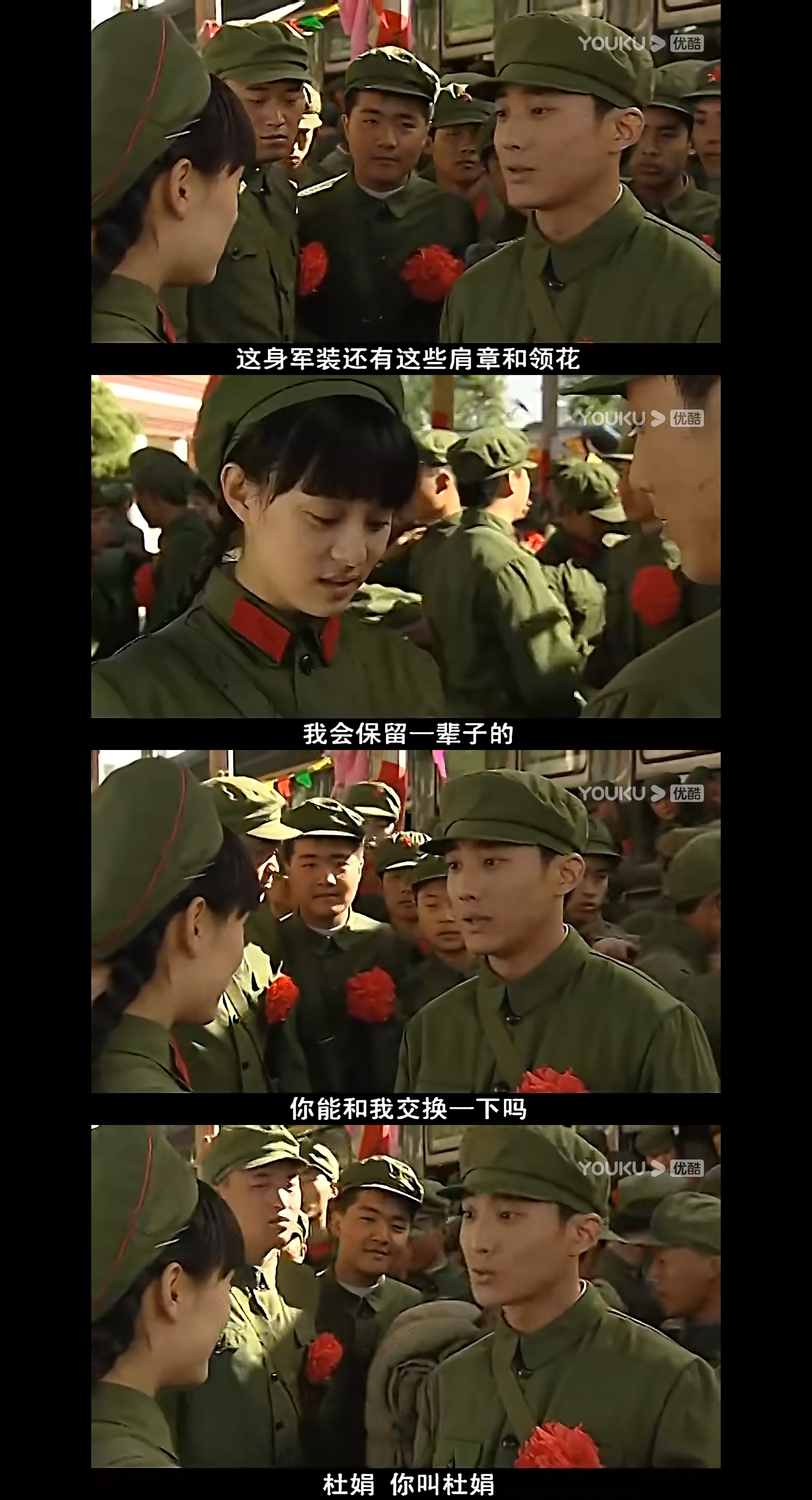 也就在交談過程中,兩人發現彼此竟然都是四川萬縣人,妥妥的老鄉;更奇妙的是,因為林彬先前將自己的領章給了保根兒,所以,當杜鵑與保根兒互相交換領章后,事實上,杜鵑手里拿著的是林彬的領章。