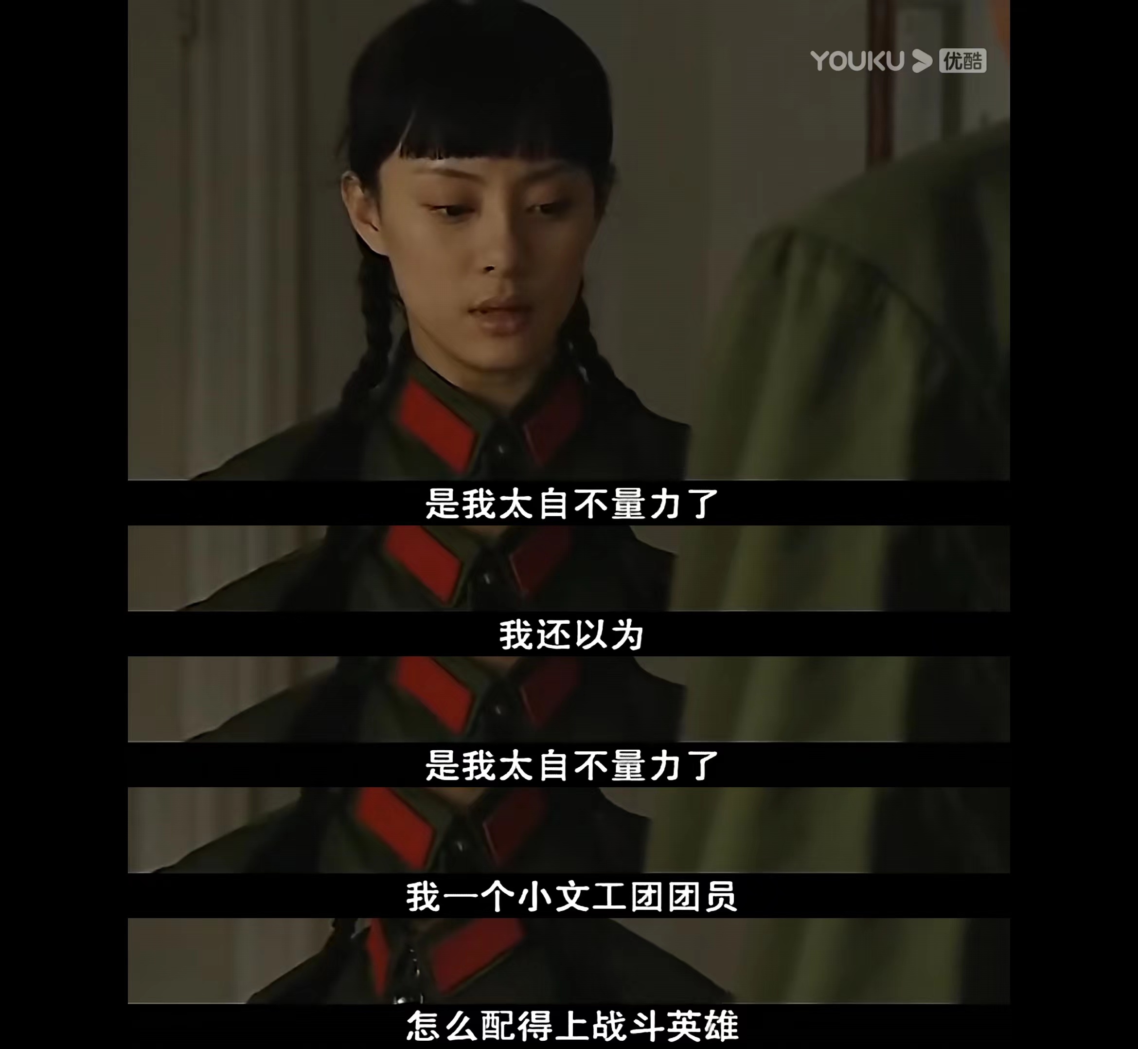 但是,當杜鵑痛哭著說了一句:“我太不自量力了,我一個小小文工團團員,怎么配得上戰斗英雄呢?”