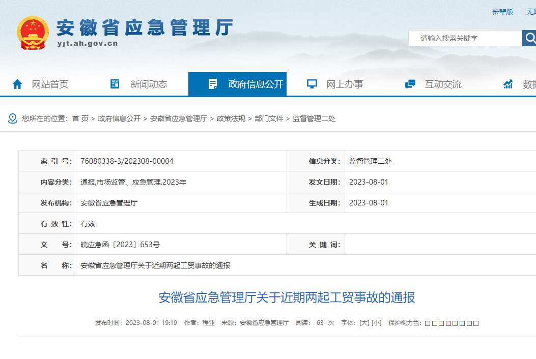 導讀近日通報兩起工貿事故 2023年7月19日,銅陵市銅陵鑫佳粉體新材料科技有限公司發生一起粉塵爆燃事故,造成1人死亡、1人受傷。7月30日,宣城市郎