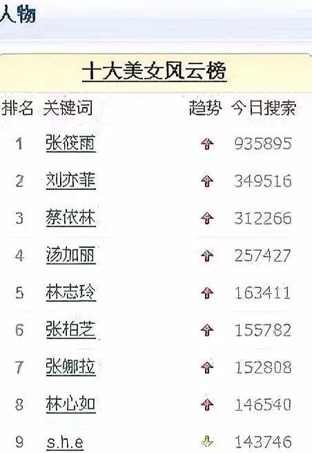 在“十大美女排行榜”里獲得榜首的位置,超過了劉亦菲,林志玲等一線女神級別的明星,也超過了她的前輩湯加麗。