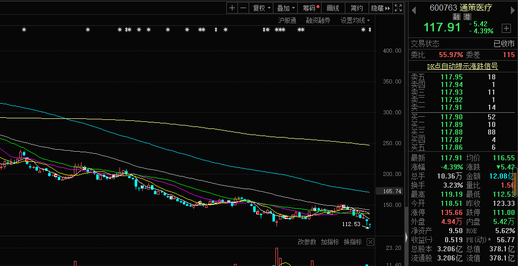 4月28日,截至當日收盤。通策醫療報跌4.39%,報117.91元每股。