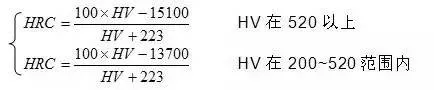 此公式換算結果與國家標準換算值對照,換算誤差為±2HV。