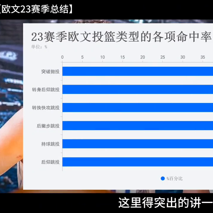 ·接下來看命中率。最高的是后仰跳投。需要強調的是,歐文23賽季的后撤步投籃表現得相當出色,命中率達到了50.5%。在同類型球員中,23賽季歐文的后撤步投籃命中率要高于庫里、利拉德和東契奇。