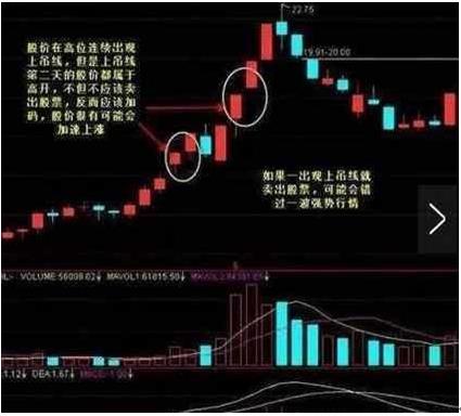 1、出現在上升途中,小實體在K線的頂部,只有出現在股價相對頂部,才可以稱為上吊線,而如果出現在股價下降途中,我們稱為錘頭線,這部分已經探討;