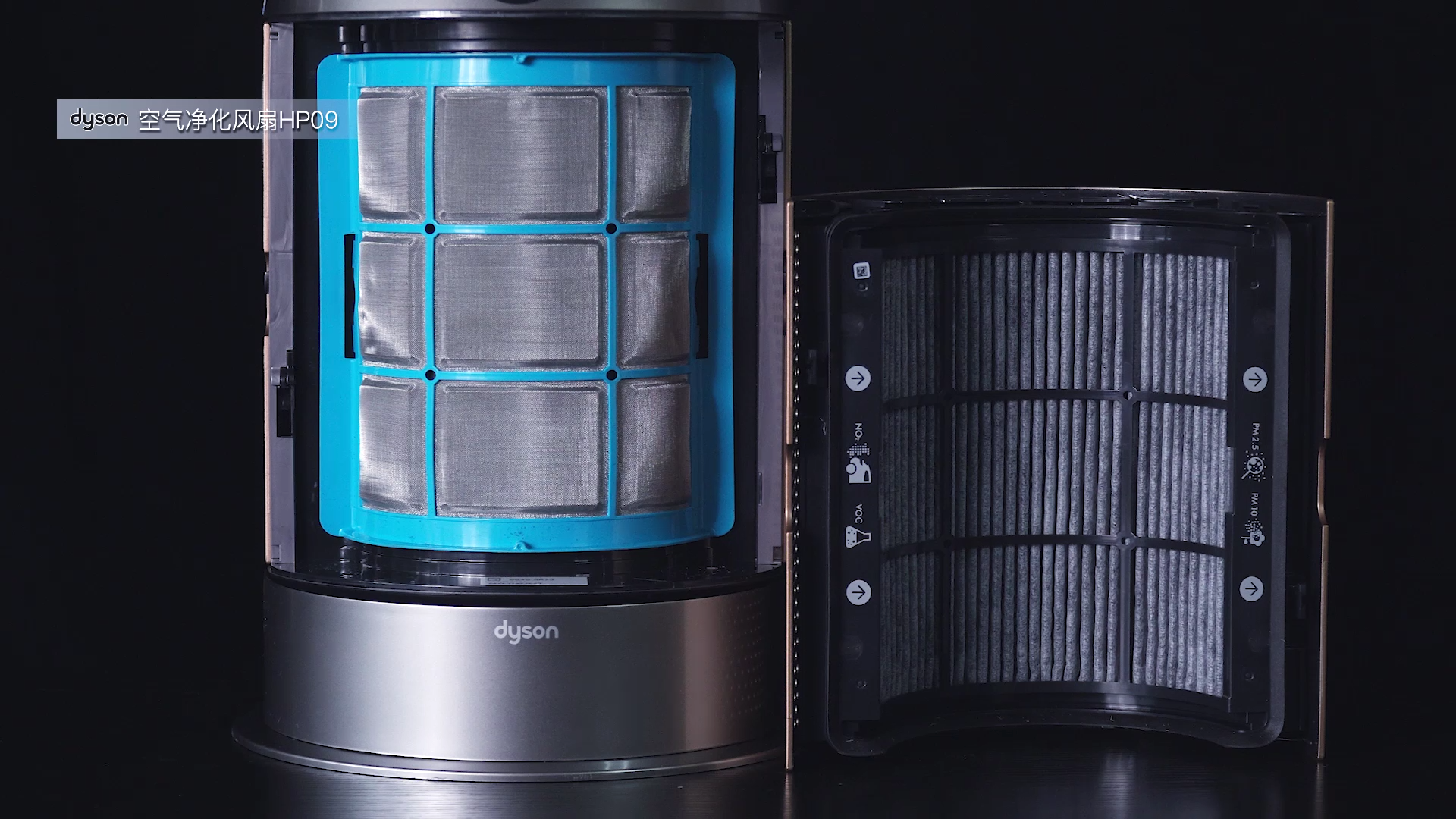戴森的這款產品叫做空氣凈化風扇,落腳點在于風扇,凈化是它的附屬功能。上半部分是經典的無葉風扇造型,下半部分是風機和濾網。