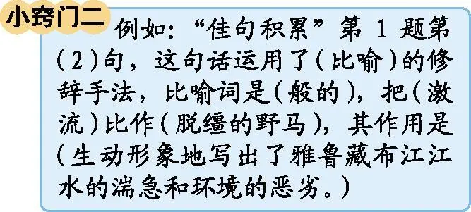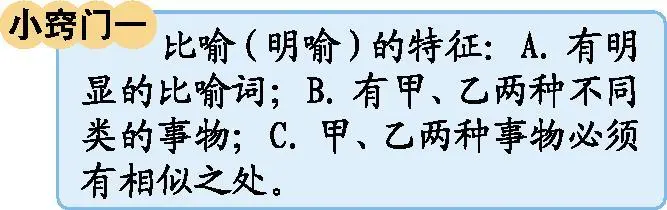 比喻的修辭手法是考試中的一個常考考點,常見的考查形式:①下面的句子運用了什么修辭手法?這樣寫有什么好處?②讀句子,用加點的詞語寫一個句子。