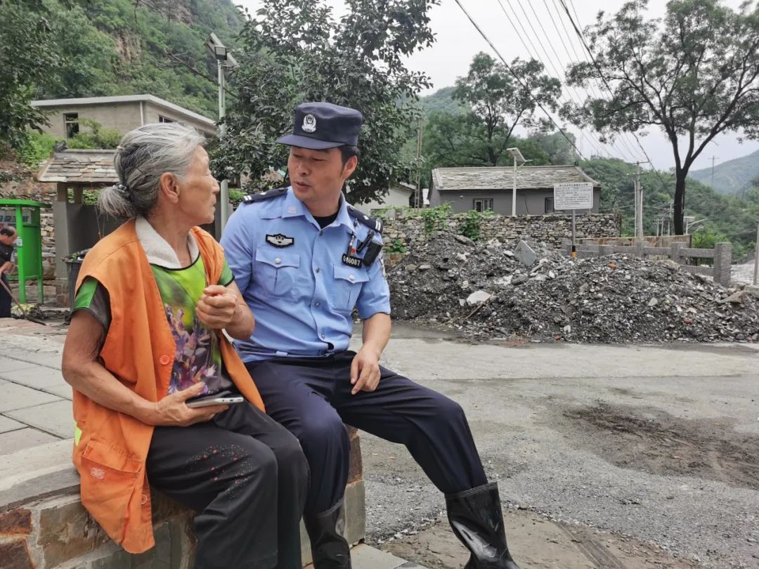 在周口店鎮,災后重建工作正在穩步進行中,在村內的臨時安置點,社區民警守護在大家身邊,聽需求,解疑惑,嘮家常,穩民心。
