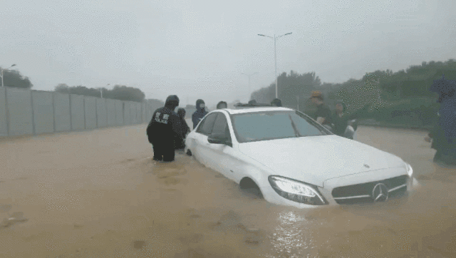 積水路段,群眾車輛被困,他們第一時間開展救援、守護,不負使命。
