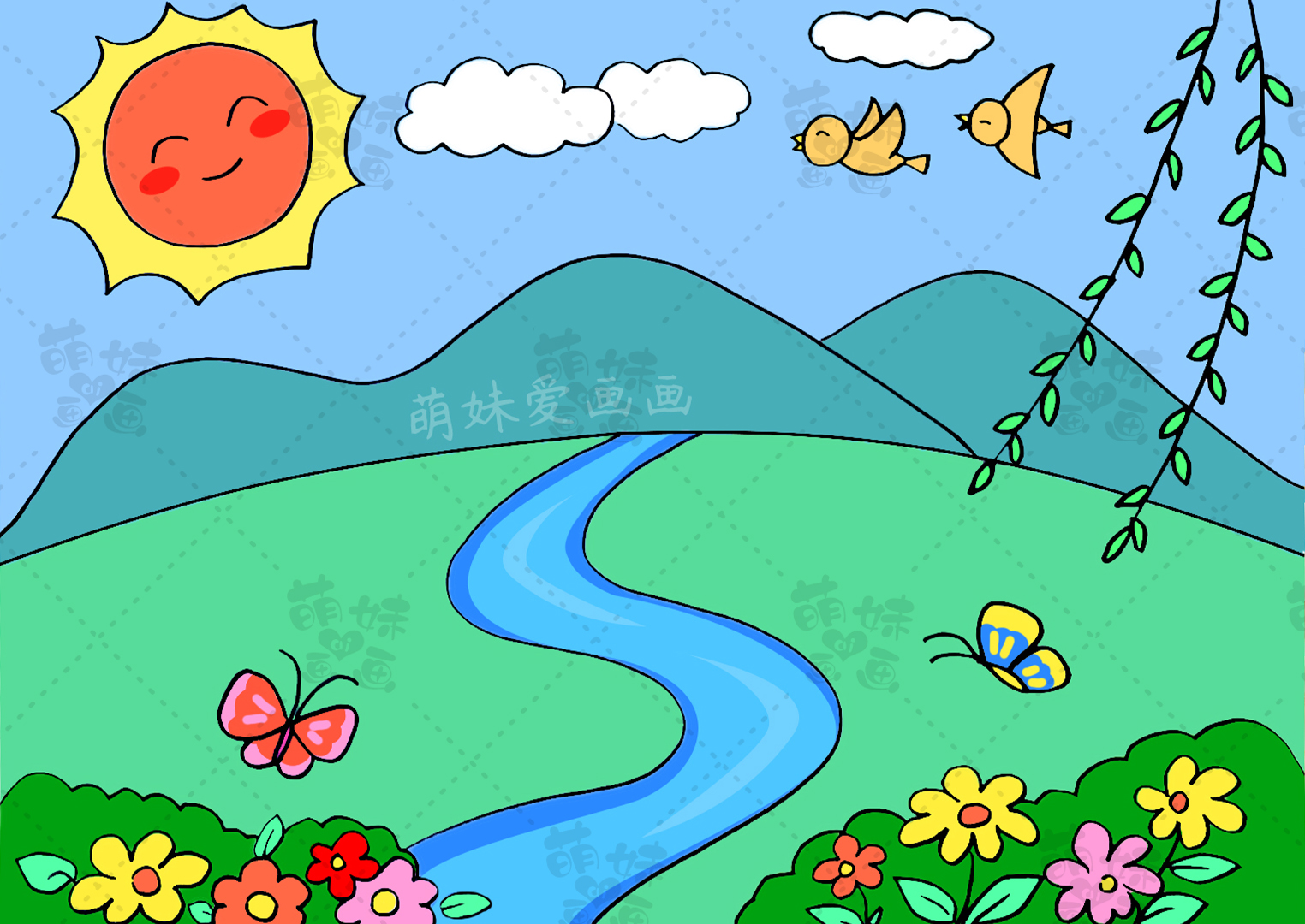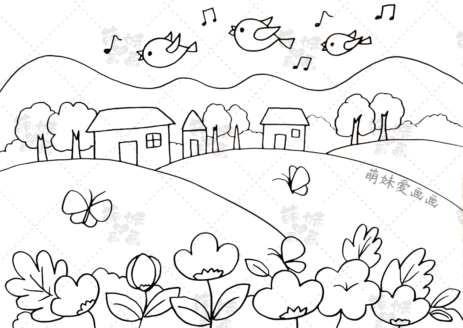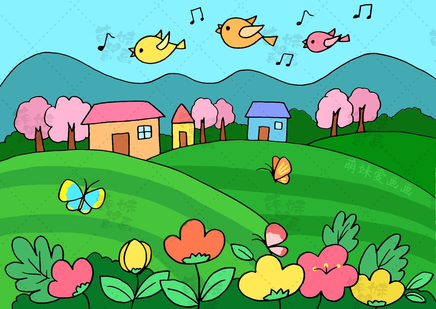 第四款兒童簡筆畫:春天的村莊