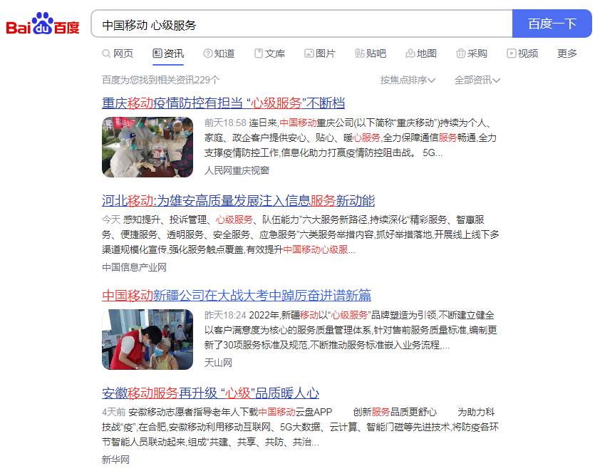 運營商財經網編輯通過百度咨訊搜索則出現229個訊息,發現絕大多數都是中國移動各省公司的傳播文章,最新一條是在河北移動于11月11日發布。
