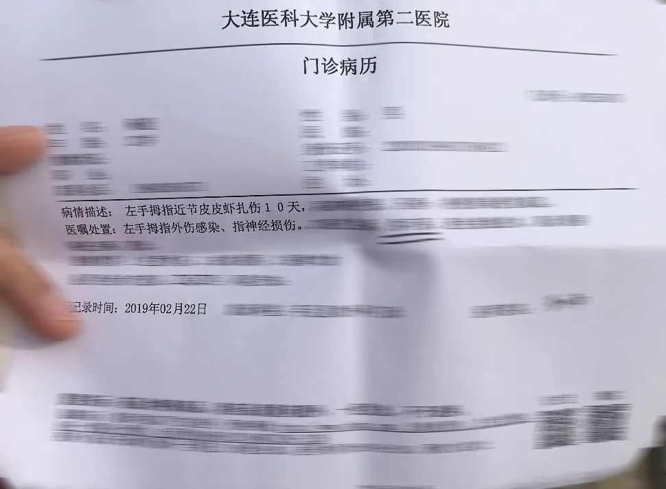 這位同學在被皮皮蝦擊穿10天之后,拇指依然是麻木的,于是他去了醫院。