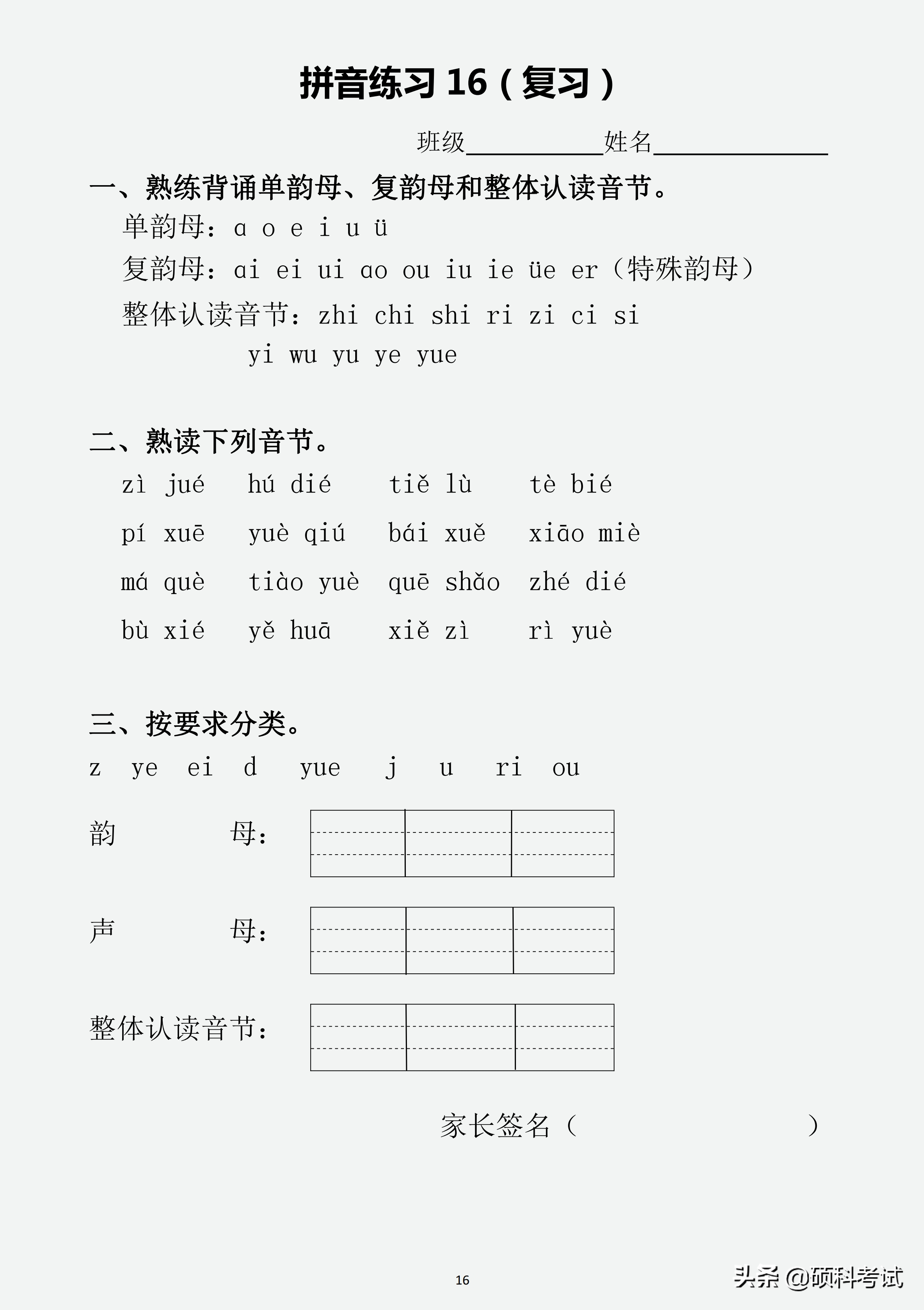 五、整體認讀音節:(16個)