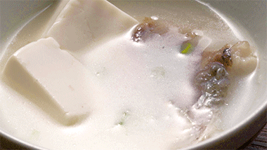 用的是入口即化的嫩豆腐,仔細的把魚煎透,燉煮時看湯慢慢變成奶白色。彈嫩的魚肉富含營養,但要小心吃,把刺兒慢慢抿出,再溫柔咽下。