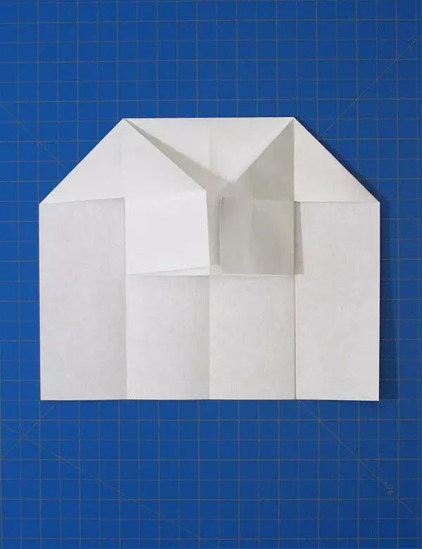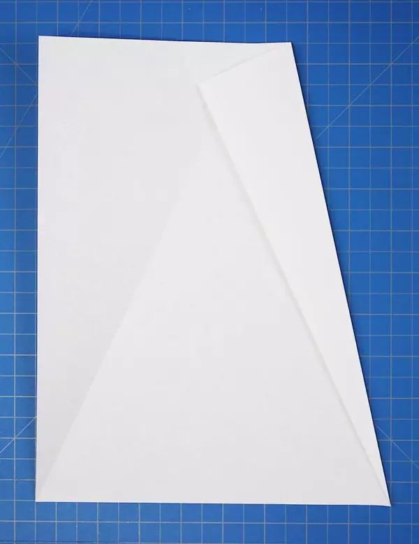 4.擺出步驟3中的造型,將右側盡可能向上折(折痕向下垂直)