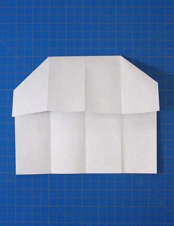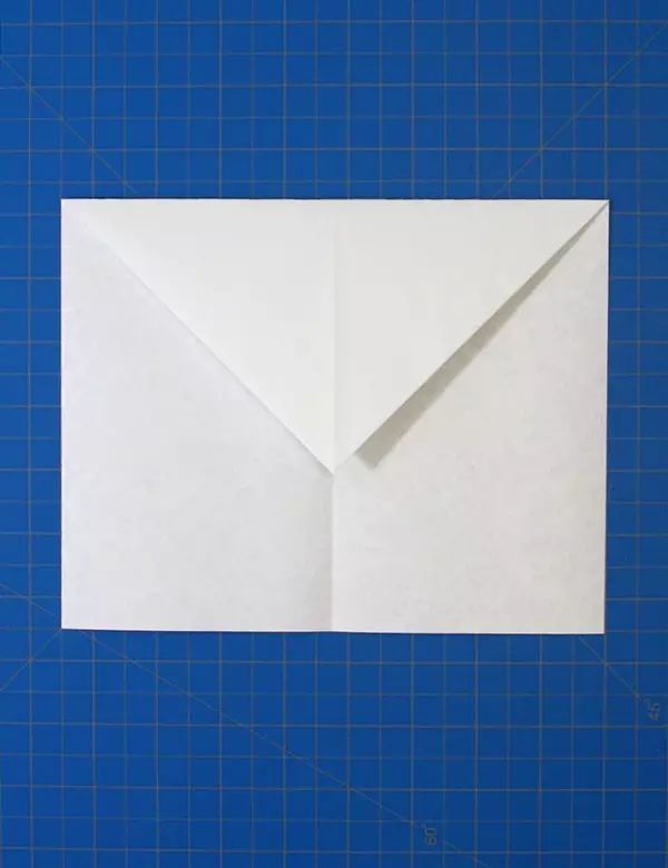 2.將兩頂角分別向沒部分的中線(大致位置)對折