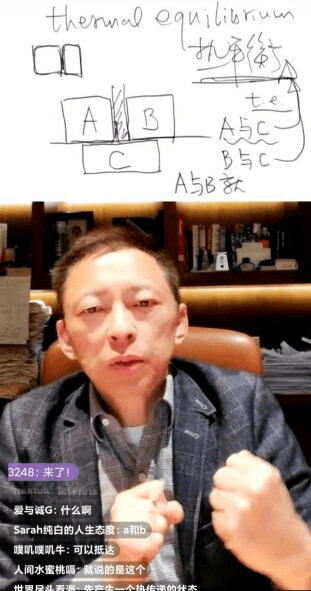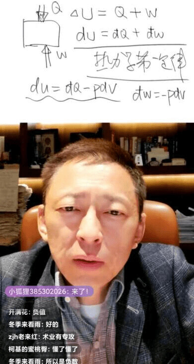 直播開場,張朝陽在小白板上寫下“www.sohu.com”,他向網友解釋道,“2月25號,是我們24年前創立搜狐的日子。所以白天忙的不得了,物理課推遲到晚上7點。”有感于時事變化,他告誡網友,“一周以來,國際上發生了很多大事,但不管這個世界怎么變,學習不能停。”而后,他繼續介紹今天的課程重點,“我們物理課學了三十多期,有時候需要回來復習一下。今天要重新理解熱力學的基本定律。”
