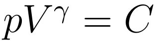 其中C為常數,可由該過程中任意狀態下的壓強與體積確定。以上絕熱方程顯示了絕熱過程中壓強p與體積V的關系,其中γ大于零,所以當體積V增大時,壓強減小。