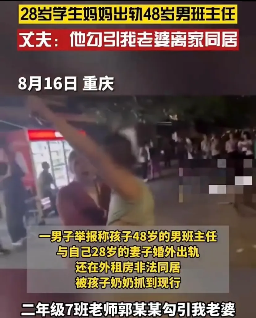 8月15日晚,重慶一名中年男子在小區樓下,向路人揭露某小學二年級班主任枉為人師,師德敗壞,和學生媽媽出軌同居!