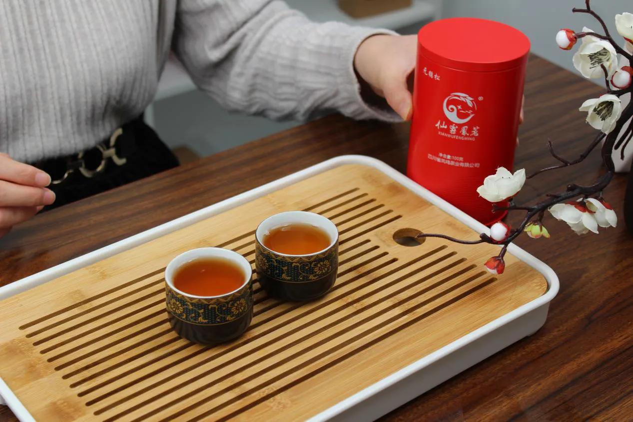 它的干茶烏潤有光澤,且散發著淡淡的香味。茶湯鮮紅明亮,茶香四溢;喝一口,滋味香甜醇厚,湯水下咽后回甘且爽口。